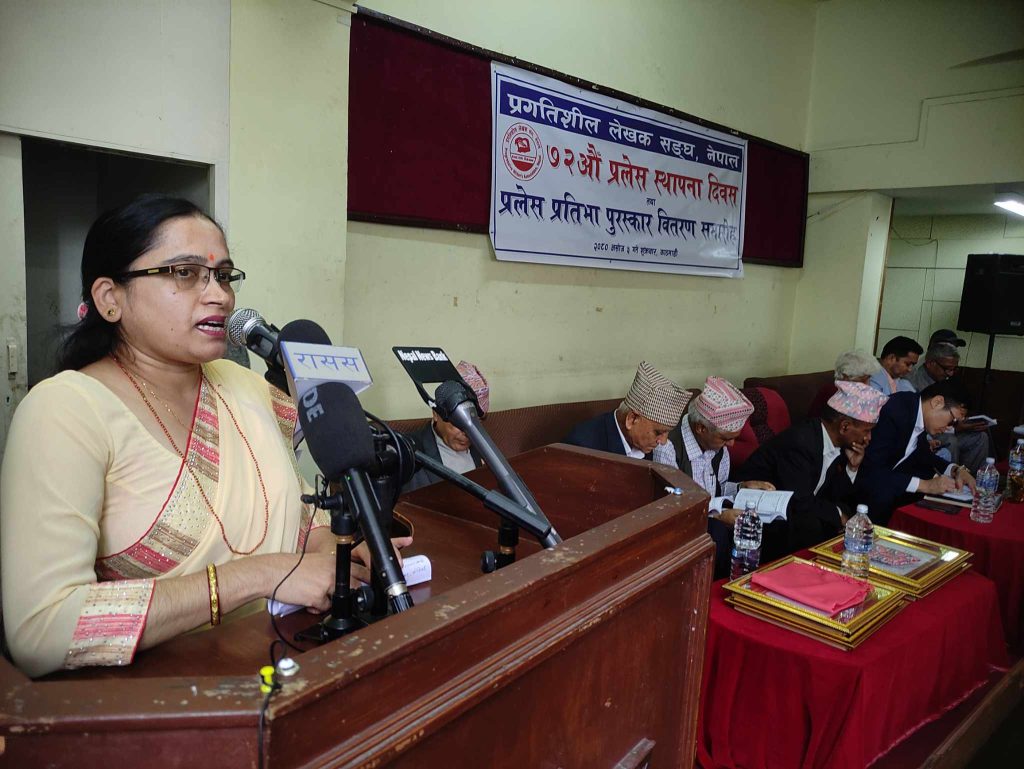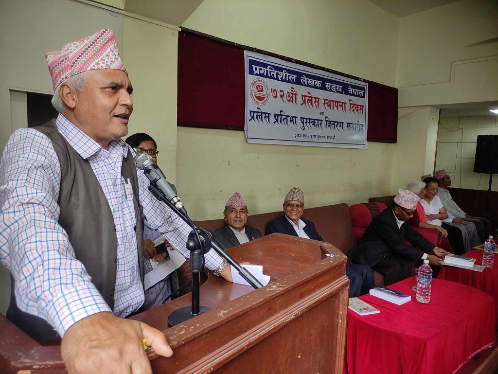 काठमाडौँ । ‘विश्वमा कम्युनिस्ट आन्दोलन रक्षात्मक अवस्थामा पुगेको तथा नेपालको बाम आन्दोलन पनि टुट फुटको अवस्थाबाट अगाडि बढिरहेको सन्दर्भमा प्रगतिशील लेखक सङ्घ, एकताको दिशामा क्रियाशील भइरहनु गौरवको कुरा भएको’ संस्कृति, पर्यटन तथा नागरिक उड्डयन मन्त्री सूदन किराँतीले बताउनुभयो । सङ्घको ७२औँ स्थापना दिवस तथा प्रलेस प्रतिभा पुरस्कारको उद्घाटन मन्तव्यमा वहाँले सो धारणा राख्नुभएको हो ।