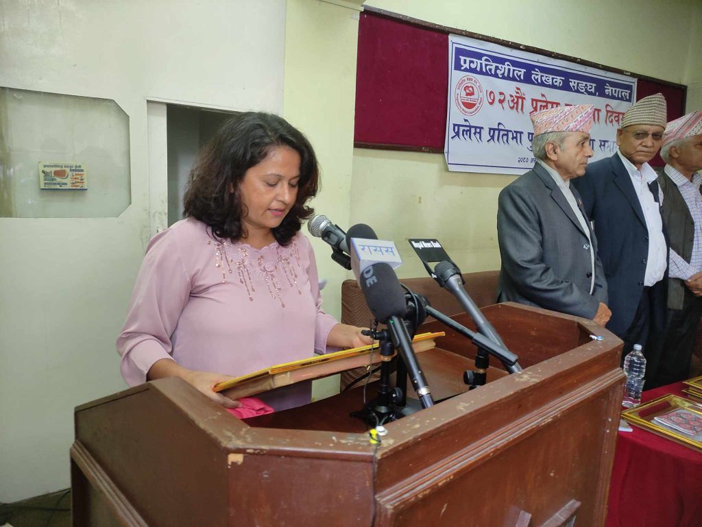 स्थापना दिवसको अवसरमा विभिन्न चार विधामा प्रलेस प्रतिभा पुरस्कारबाट सम्मानित गरिएको थियो । त्यसरी सम्मानित हुनेहरूमा रु.२५,१०० राशिसहित प्रलेस श्यामप्रसाद स्मृति पुरस्कारबाट कुन्ता शर्मा, रु.२०,१०० राशिसहित प्रलेस प्रतिभा पुरस्कारबाट नरेश भण्डारी, रु.१०,१०० राशिसहित प्रलेस बाल साहित्य पुरस्कारबाट प्रा.डा. कपिल लामिछाने र रु.१०,१०० राशिसहित प्रलेस युवा पुरस्कारबाट गुरुप्रसाद कुमाल ‘बुलबुल’लाई सम्मानित गरिएको थियो । सोही अवसरमा अन्तरवार्ता विशेषाङ्क, प्रलेस २८ समेत प्रमुख अतिथि मन्त्री किराँतीबाट विमोचित गरिएको थियो ।