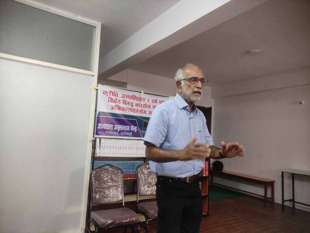 यस्तै विषयहरूमा केन्द्रित हुँदै ज्ञानशाला अनुसन्धान केन्द्रले आश्विन २३ गते कुरीति, अन्धविश्वास र सबै प्रकारका विभेदहरूका विरुद्धको अन्तरक्रिया कार्यक्रम सम्पन्न गर्यो । कार्यक्रममा विषयवस्तु प्रस्तोताहरू थिए, भारतीय सामाजिक अभियन्ता प्रोफेसर डा.नरेन्द्र नायक लगायत अन्य सामाजिक अभियन्ताहरू ।