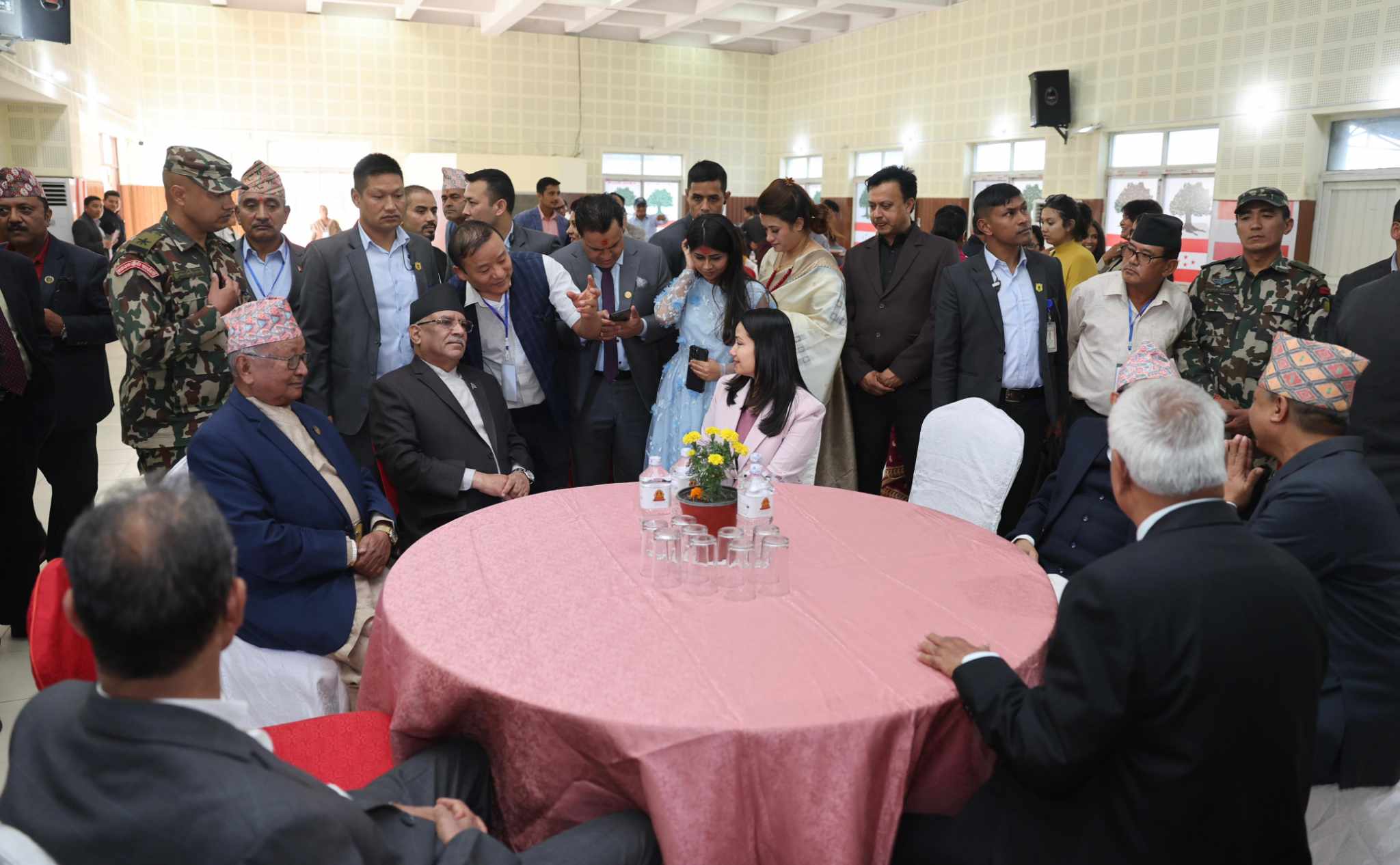 नेकपा एमालेका अध्यक्ष केपी शर्मा ओली पुगेको केही समय पछि प्रधानमन्त्री पुष्पकमल दाहाल प्रचण्ड पनि चियापानमा पुगेका छन् ।