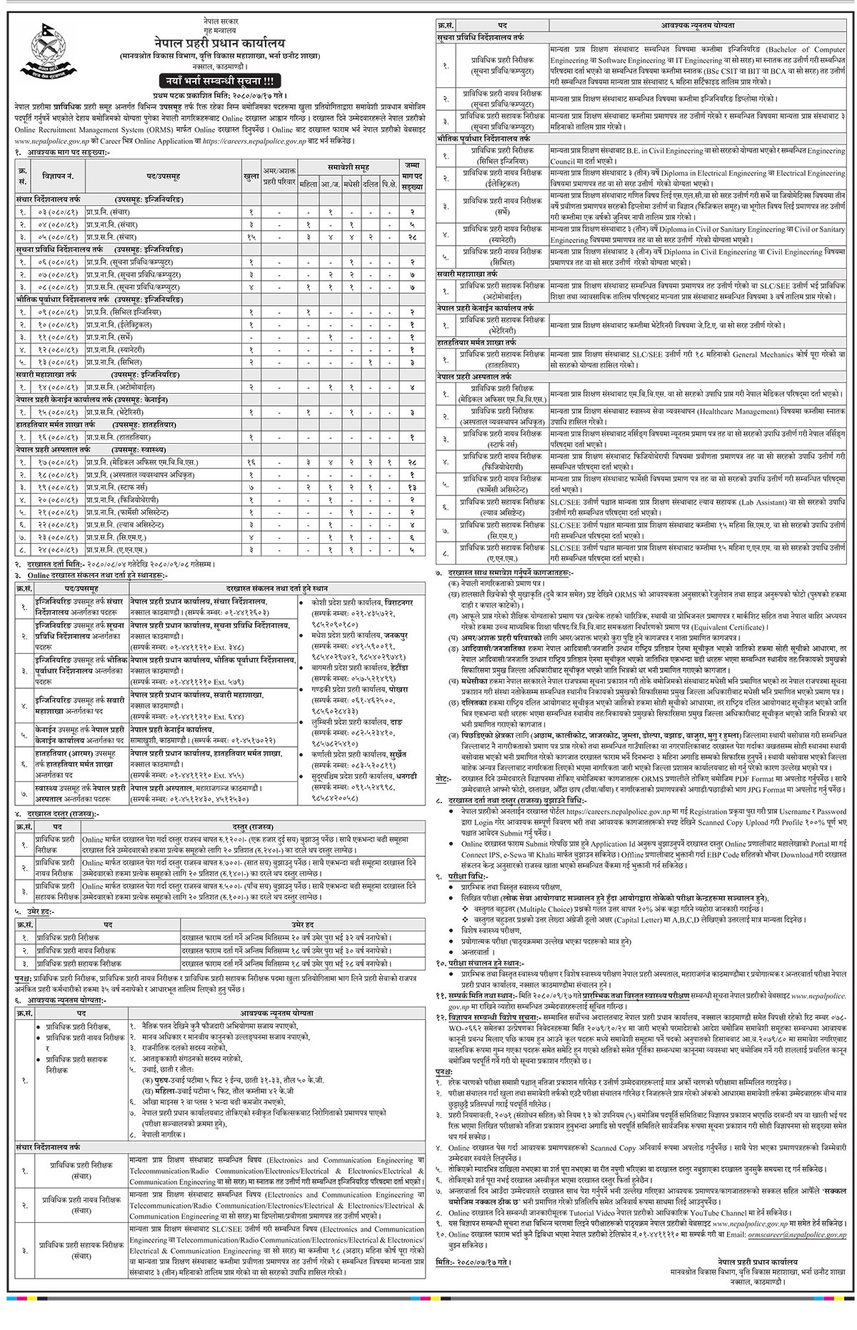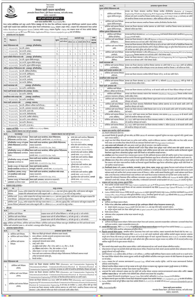 नेपाल प्रहरी प्रधान कार्यालय, नक्सालको मानव श्रोत विकास विभाग, वृत्ति विकास महाशाखा, भर्ना छनोट शाखाले प्राविधिक प्रहरी समूहअन्तर्गत रिक्त रहेका विभिन्न पदमा खुला तथा समावेशी प्रावधान बमोजिम पदपूर्ति गर्न लागेको जनाउँदै निवेदन माग गरेको हो ।