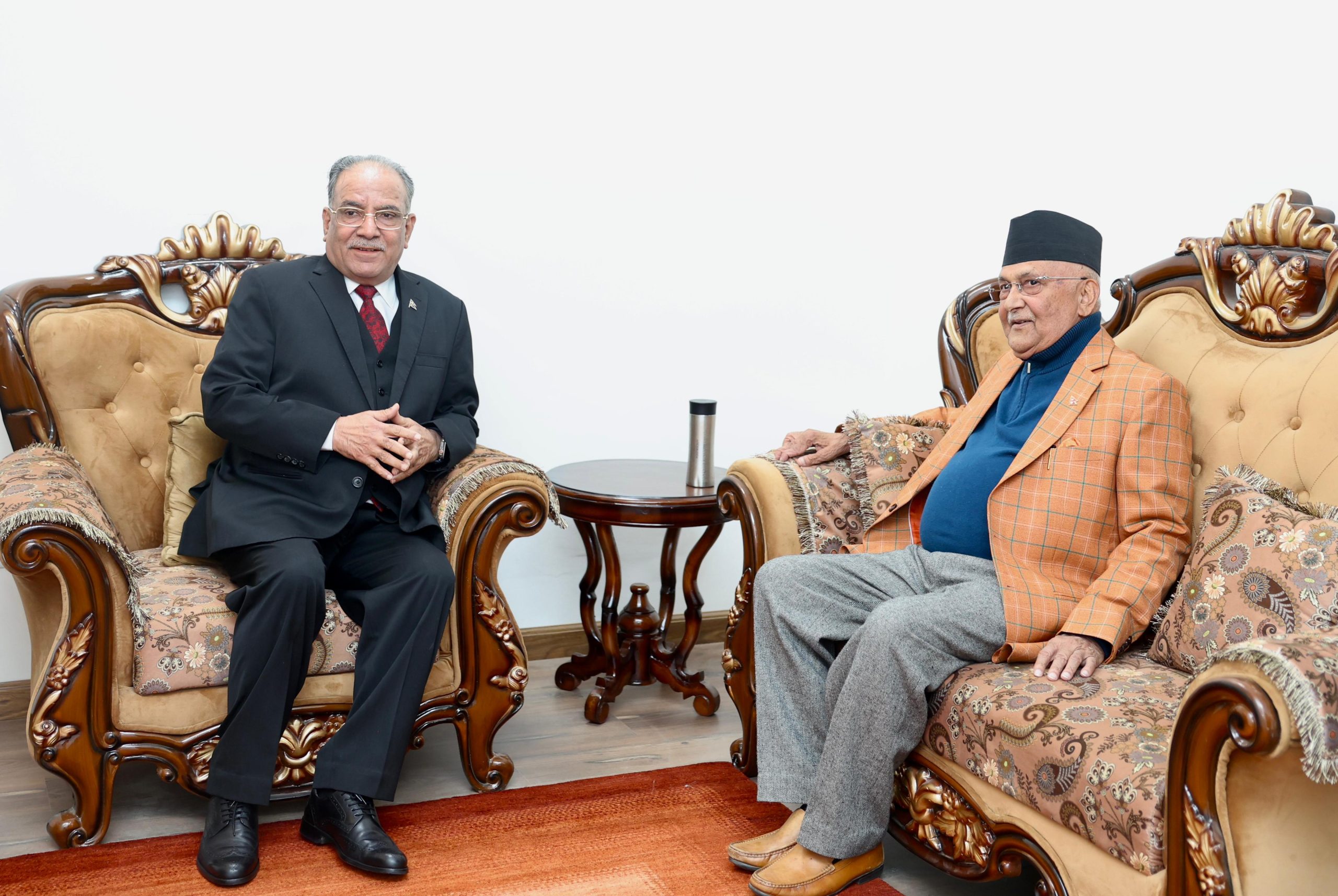 १२ मङ्सिर, काठमाडौं । प्रधानमन्त्री पुष्पकमल दाहाल प्रचण्ड र प्रमुख प्रतिपक्षी दल एमाले अध्यक्ष केपी शर्मा ओलीबीच भेटवार्ता भएको छ ।