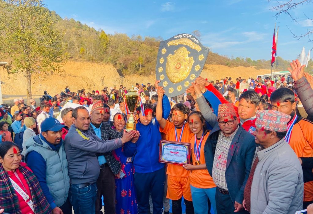 जाजरकोट । जिल्ला स्तरीय १४ औं राष्ट्रपति रनिङ शिल्ड प्रतियोगिताको उपाधी पुनः छेडागाड नगरपालिकाले जितेको छ । गत वर्षको शिल्ड विजेता छेडागाड नगरपालिकाले यसपटकको शिल्ड पनि उचालेको हो ।