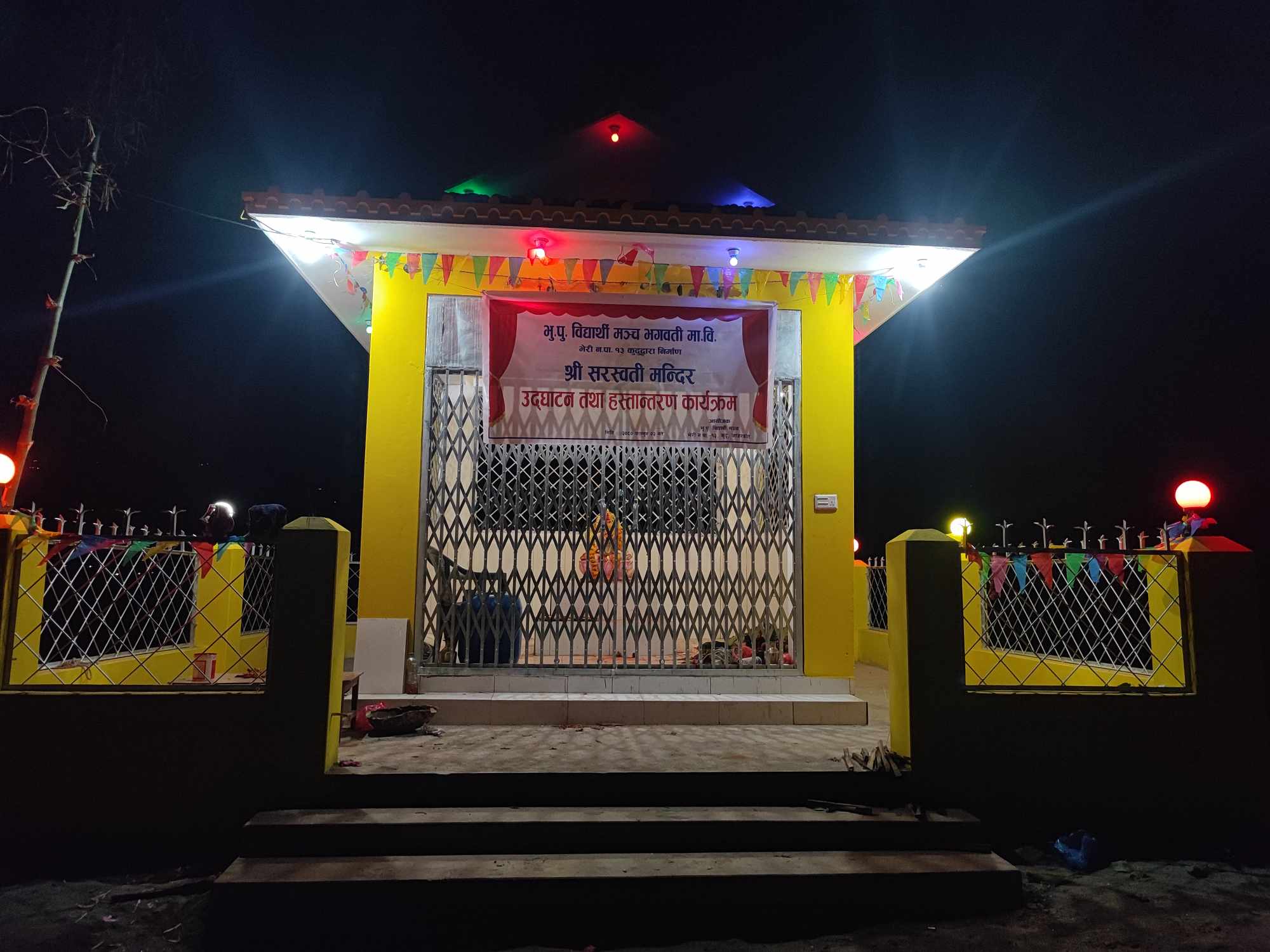 मन्दिर निर्माण गरि आवश्यक रंगरोगन र बत्ति समेत जडान गरि हस्तान्तरण गरिएको पूर्व विद्यार्थी मन्चका सहसंयोजक भोला खत्रीले बताए ।