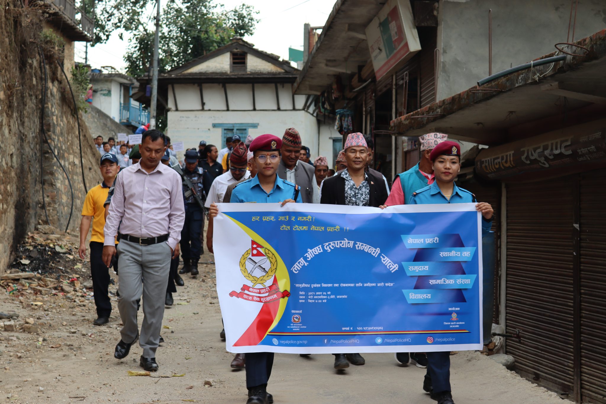 जाजरकोट । लागुऔषध दुर्व्यसन विरुद्ध जाजरकोटमा सरोकारवालाहरुको संयुक्त र्याली प्रदर्शन गरिएको छ । लागु पदार्थ सेवन तथा अवैध ओसारपसार विरुद्धको अन्तराष्ट्रिय दिवसको अवसरमा जाजरकोटमा लागुऔषध दुर्व्यसन विरुद्ध र्याली निकालिएको हो । लागु औषध दुरुपयोग विरुद्ध लडौँ, रोकथाममा जोड दिऔँ भन्ने राष्ट्रिय नाराका साथ मनाइएको लागु पदार्थ सेवन तथा अवैध ओसारपसार विरुद्धको अन्तराष्ट्रिय दिवसको साप्ताहव्यापी कार्यक्रम अन्तर्गत जाजरकोटमा र्याली प्रदर्शन गरिएको हो ।
